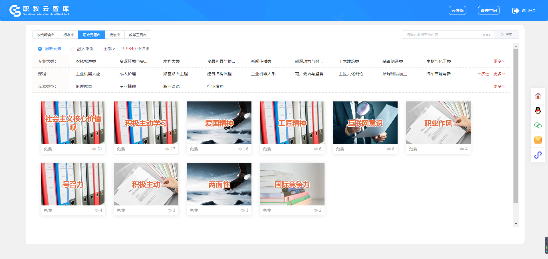 内含政策解读库、标准库、思政元素库、模板库、教学工具库