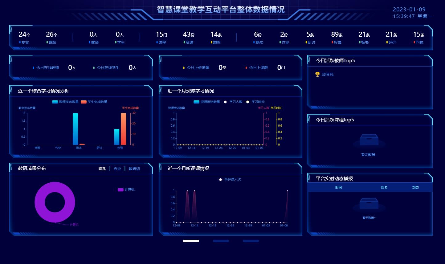通过可视化数据图表展示,直观了解教师教学情况与学生学习情况